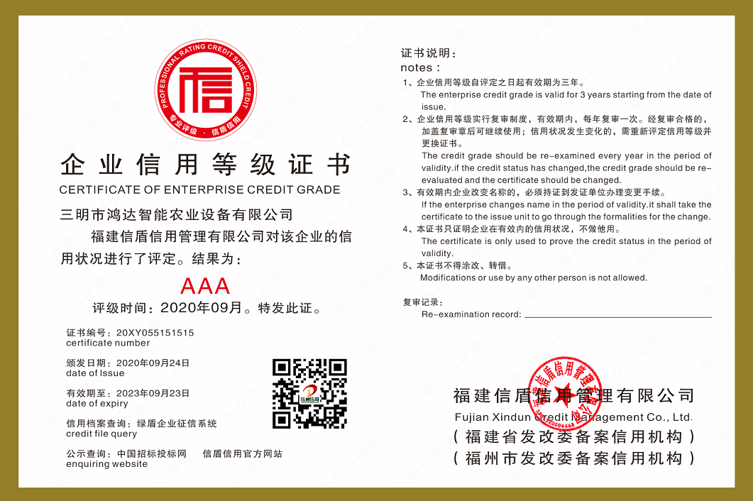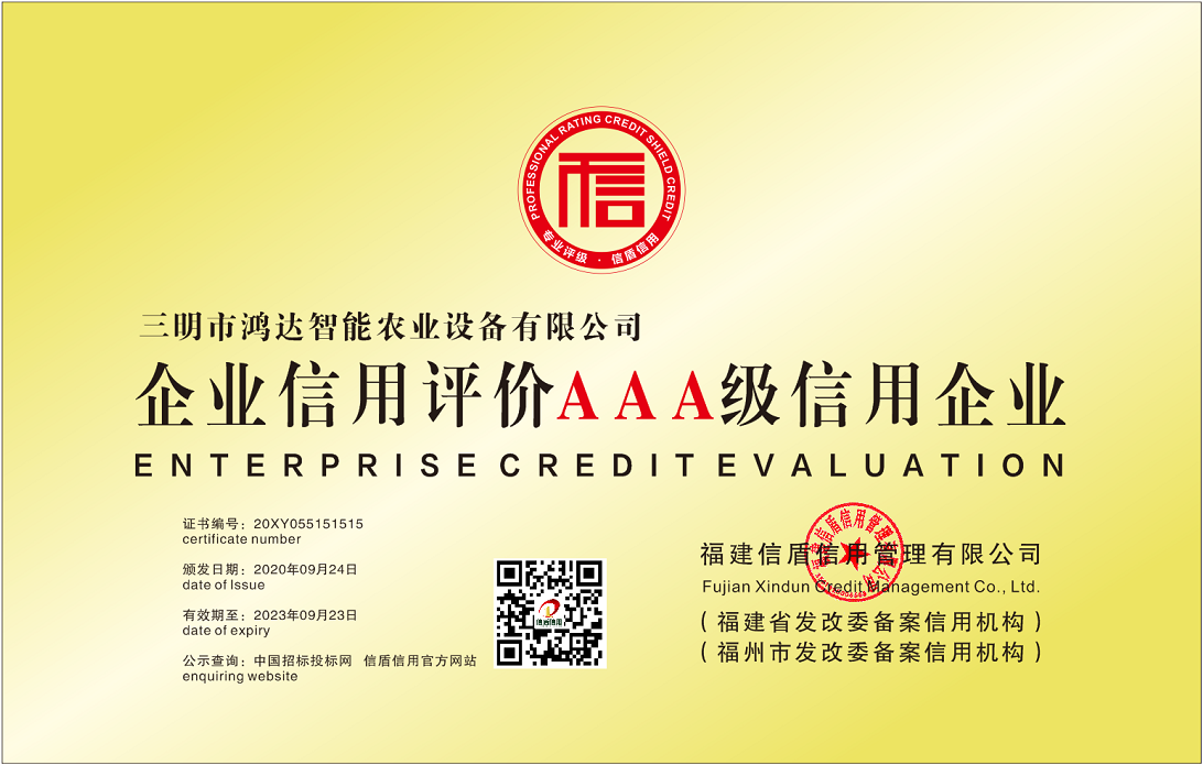 三明市鴻達智能農業設備有限公司2020