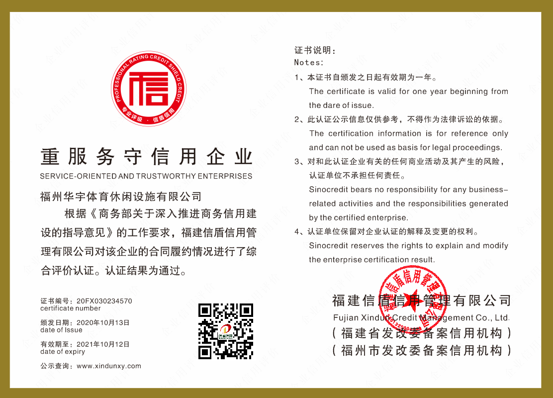 福州華宇體育休閑設施有限公司2020