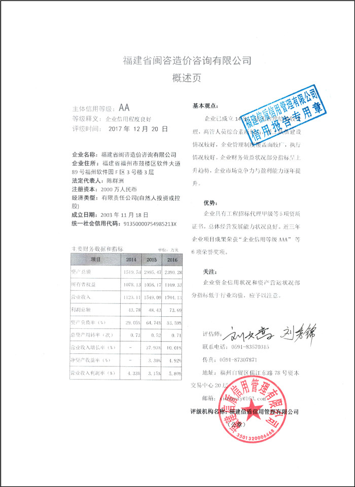 福建閩咨造價咨詢有限公司 XDPJ201712227