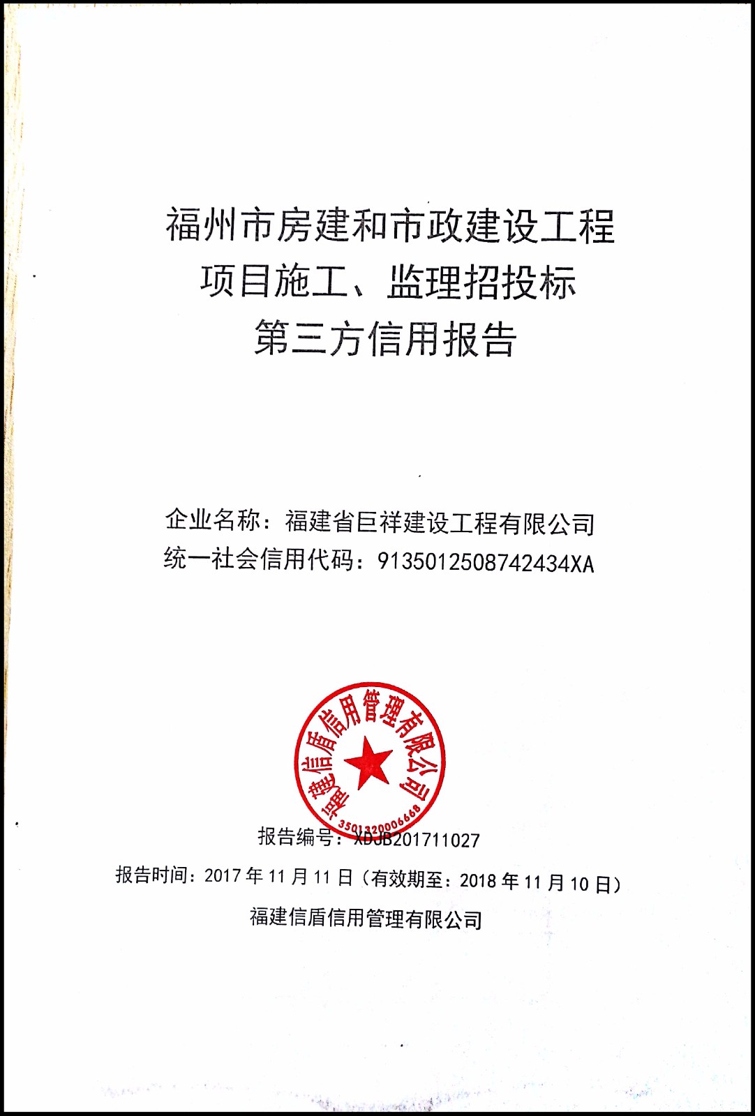 福建省巨祥建設工程有限公司 XDJB201711027