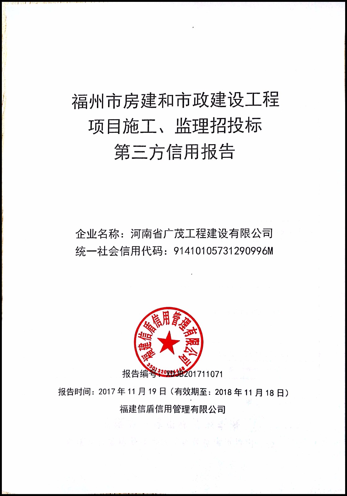 河南省廣茂工程建設有限公司 XDJB201711071