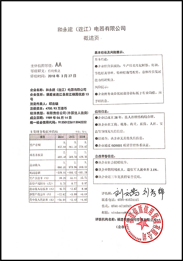和永建(連江)電器有限公司 XDPJ201803179