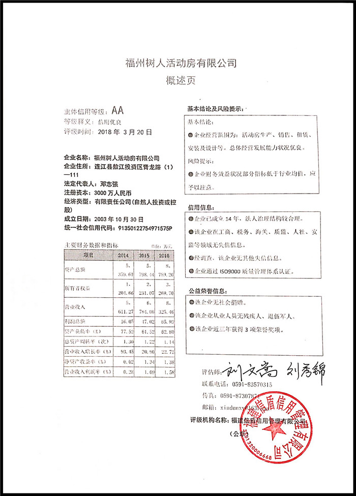 福州樹人活動房有限公司 XDPJ201803183