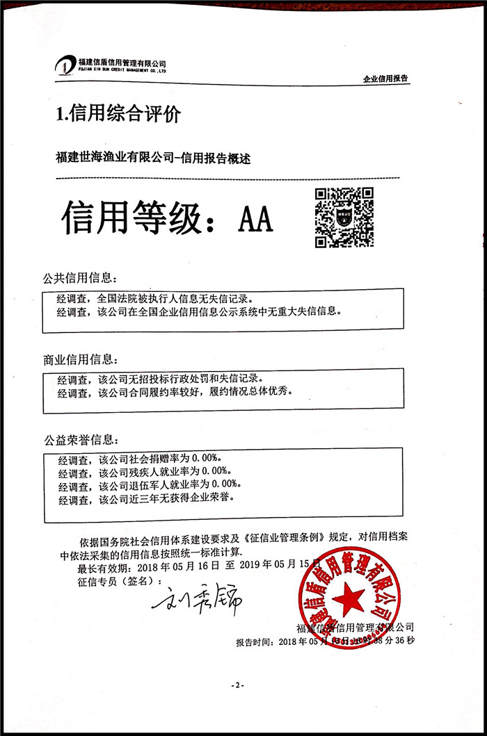 福建世海漁業有限公司 XDBG201805010