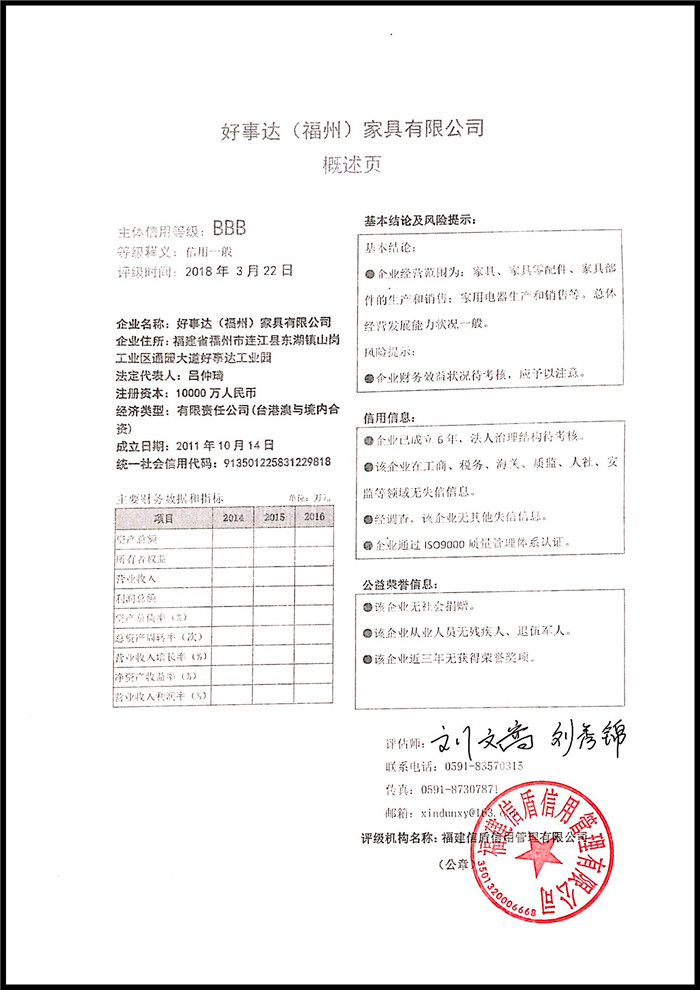 好事達(福州)家具有限公司 XDPJ201803224