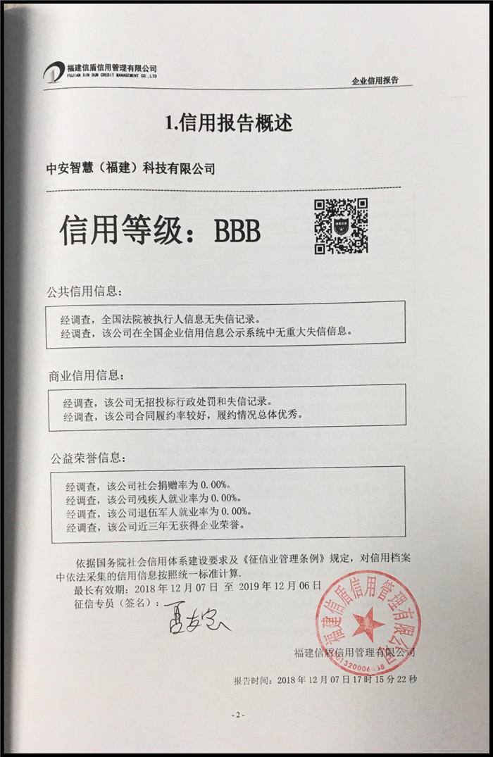 中安智慧(福建)科技有限公司 XDBG201812195