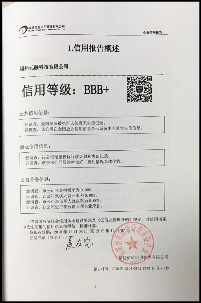 福州元融科技有限公司 XDBG201812201