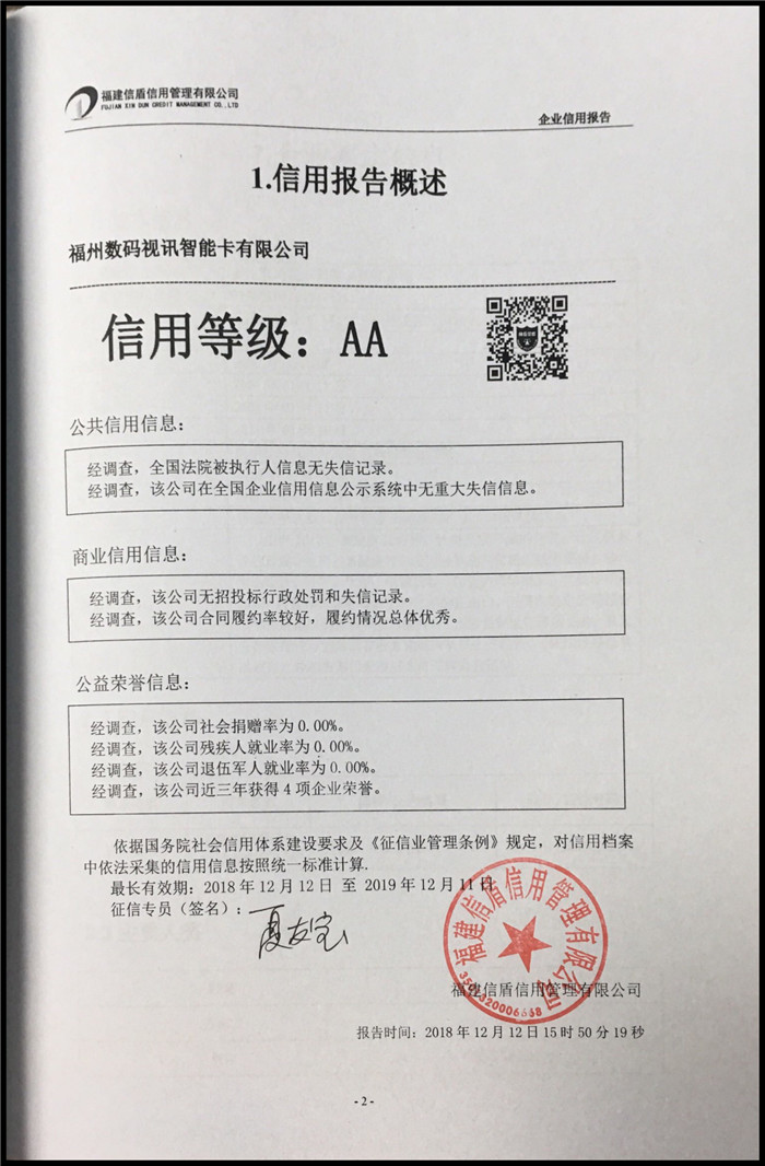 福州數碼視訊智能卡有限公司 XDBG201812014