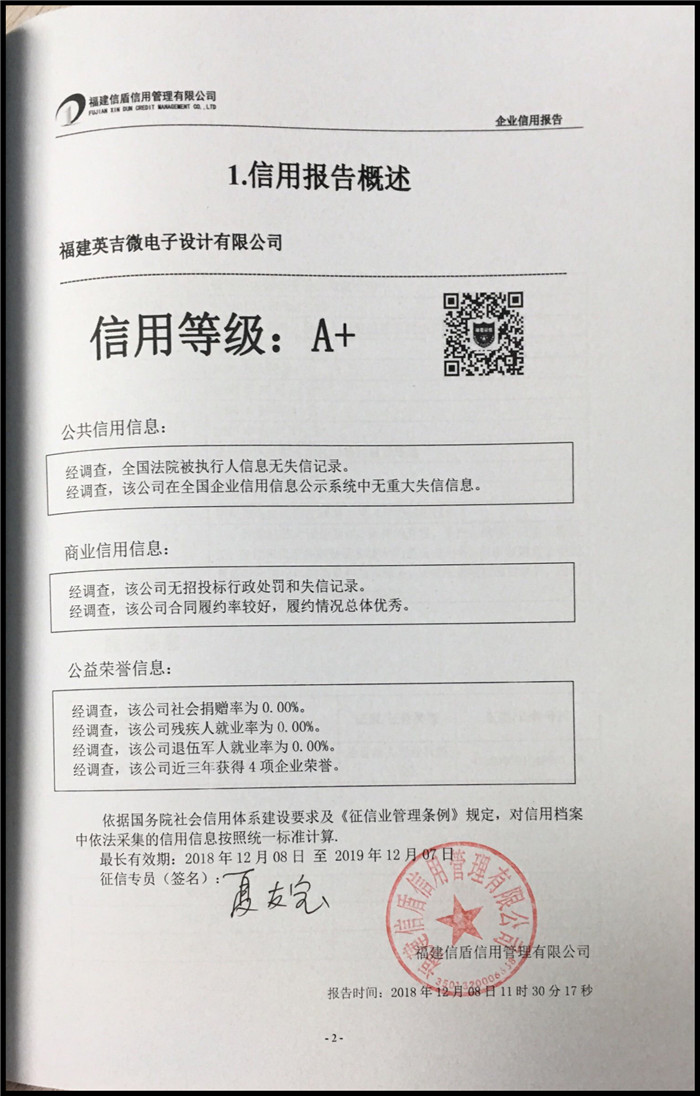 福建英吉微電子設計有限公司 XDBG201812182