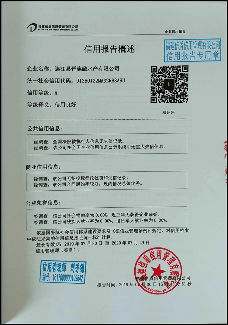 連江縣晉連融水產有限公司2019