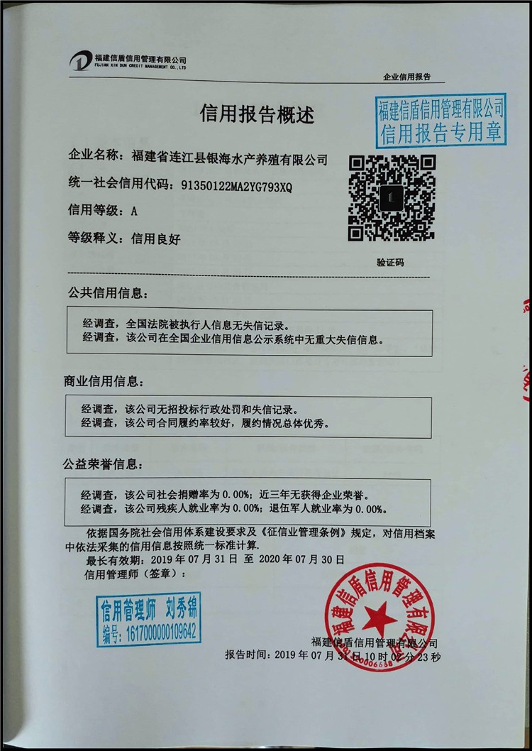 福建省連江縣銀海水產養殖有限公司2019