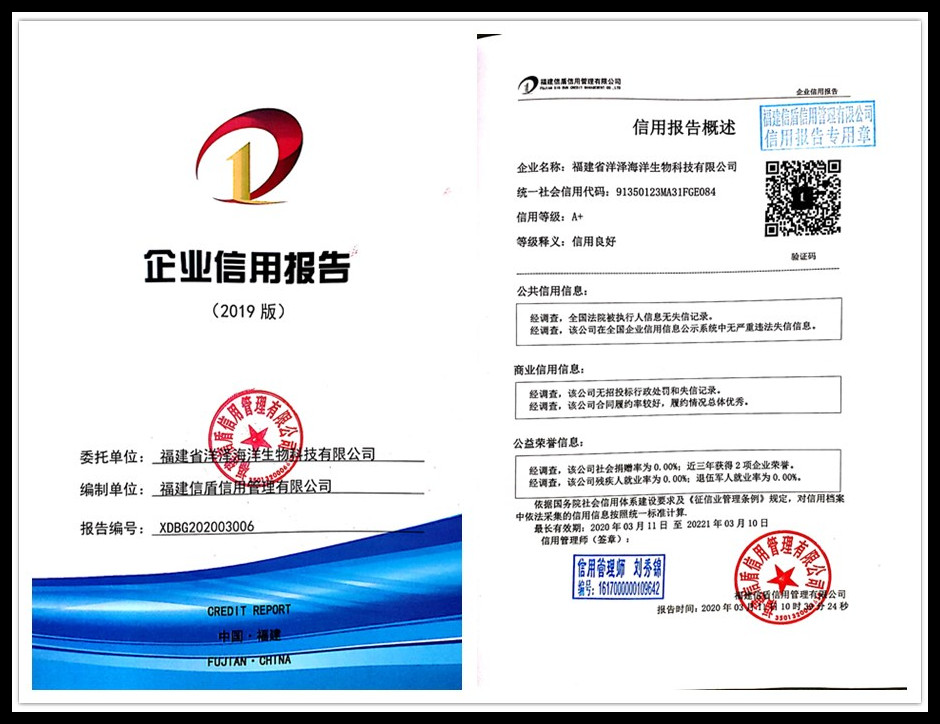 福建省洋澤海洋生物科技有限公司2020